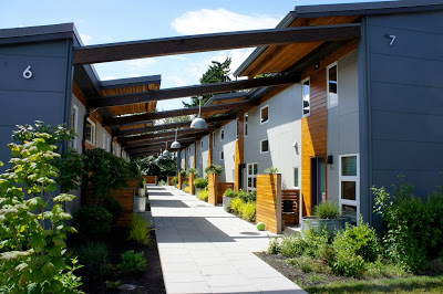 Recently Frank and I had the pleasure of touring the Place of Hidden Waters in Tacoma, Washington, with Annette Bryan, Executive Director of the Puyallup Nation Housing Authority, and design architect Daniel Glenn. Bryan has been preparing for this project since 2004 on many levels, from insuring a clean financial audit to educating the Board and Council to obtaining community input and involvement. Glenn’s Crow tribal ancestry coupled with his MIT education informs his design. While his buildings are beautiful, they are much more due to the specific cultural support they provide Native American peoples.